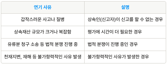 • 상속재산의 규모가 크거나 복잡하여 평가에 시간이 더 필요한 경우